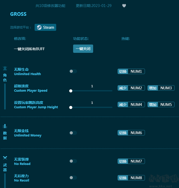 《末日绿钞》是一款独特的僵尸塔防游戏。建立防御堡垒对抗僵尸入侵。这款《末日绿钞GROSS修改器》提供玩家无限生命,超级速度,无限金钱,无需装弹等强力游戏辅助,帮助玩家守护庇护所,击败僵尸潮,游戏体验更佳!感兴趣的朋友不要错过,KK下载站推荐大家下载体验!
