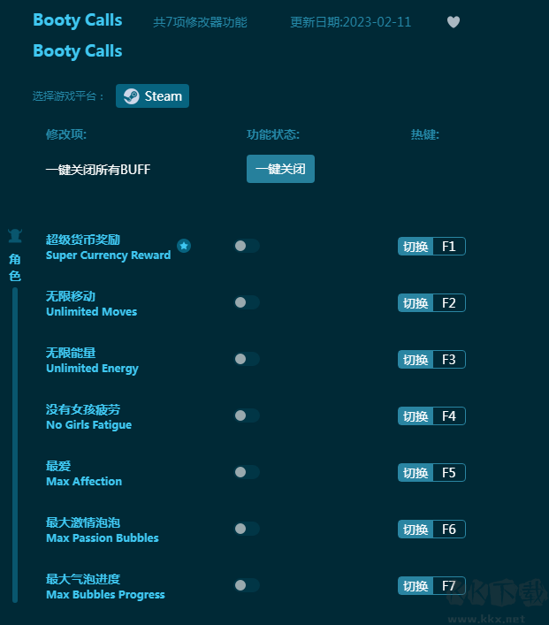 《BootyCalls》是一款成人约会模拟游戏,挑战你的软肋。这款《BootyCalls修改器》能为玩家带来超级货币奖励,无限移动,无限能量,最大激情泡泡等游戏辅助,帮助玩家攻略角色,游戏体验更佳!感兴趣的朋友不要错过,KK下载站推荐大家下载体验!