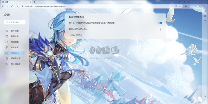 为您优化了标签页性能:当前标签处于闲置状态时,联想浏览器已为您释放了120.0MB的内存,您可以在设置中更改