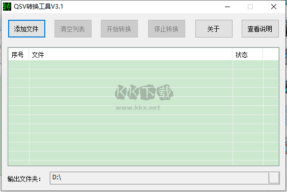 qsv转换绿色版是一款专门用来为用户们进行qvs格式的视频文件转换为mp4格式的工具,支持用户们便捷的将格式进行转换后便捷的进行播放和使用,你可以轻松的进行操作,这里拥有极快的转换速度提供给用户们进行qsv文件的转换,支持批量转换使用,让你高效的处理qsv文件,感兴趣的用户快来KK下载体验吧~