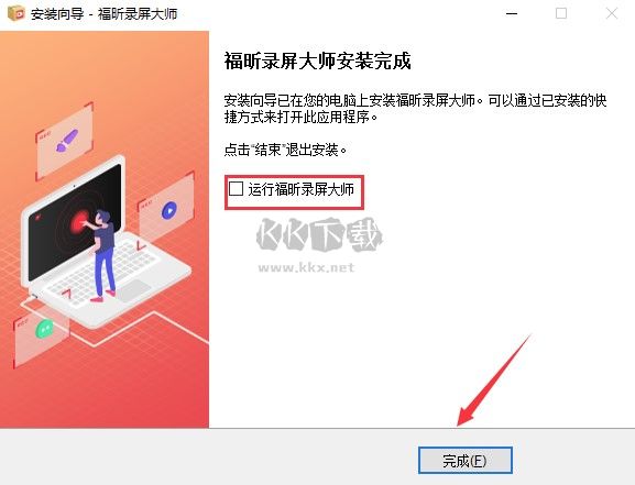 4、软件正在安装中,请等待;福昕录屏大师安装成功,根据需要选择是否勾选“立即运行软件”,点击“完成”退出安装向导。