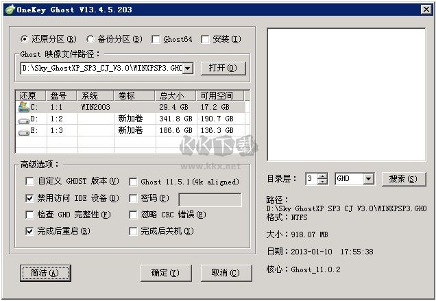 在实际情况中,是不能对 Ghost 镜像文件所在的分区进行备份或恢复,因此分区列表中不会出现 Ghost 镜像文件所在的分区。
