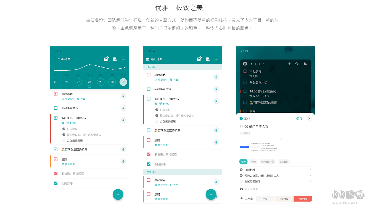 优雅简洁:全球*受欢迎的色彩—马尔斯绿,优雅高效的交互设计,像素级的UI打磨