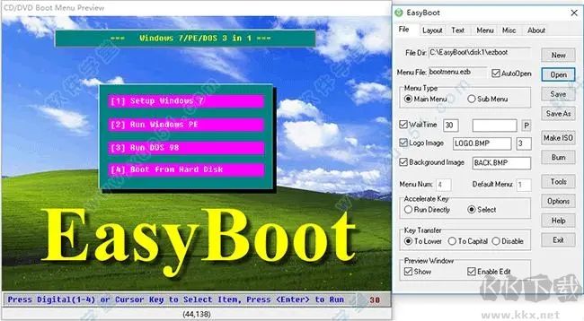 EasyBoot(启动盘制作工具):一款集成化的启动盘制作工具,高软件界面清爽,使用便捷,用户可以通过它进行简简单单的制作启动盘,支持最多35个菜单项的创建;在这里,它自动生成引导文件和菜单文件、也直接生成可刻录的启动光盘影像文件等等!功能非常强大,是一款非常强大的软件,感兴趣的小伙伴欢迎前来下载体验!