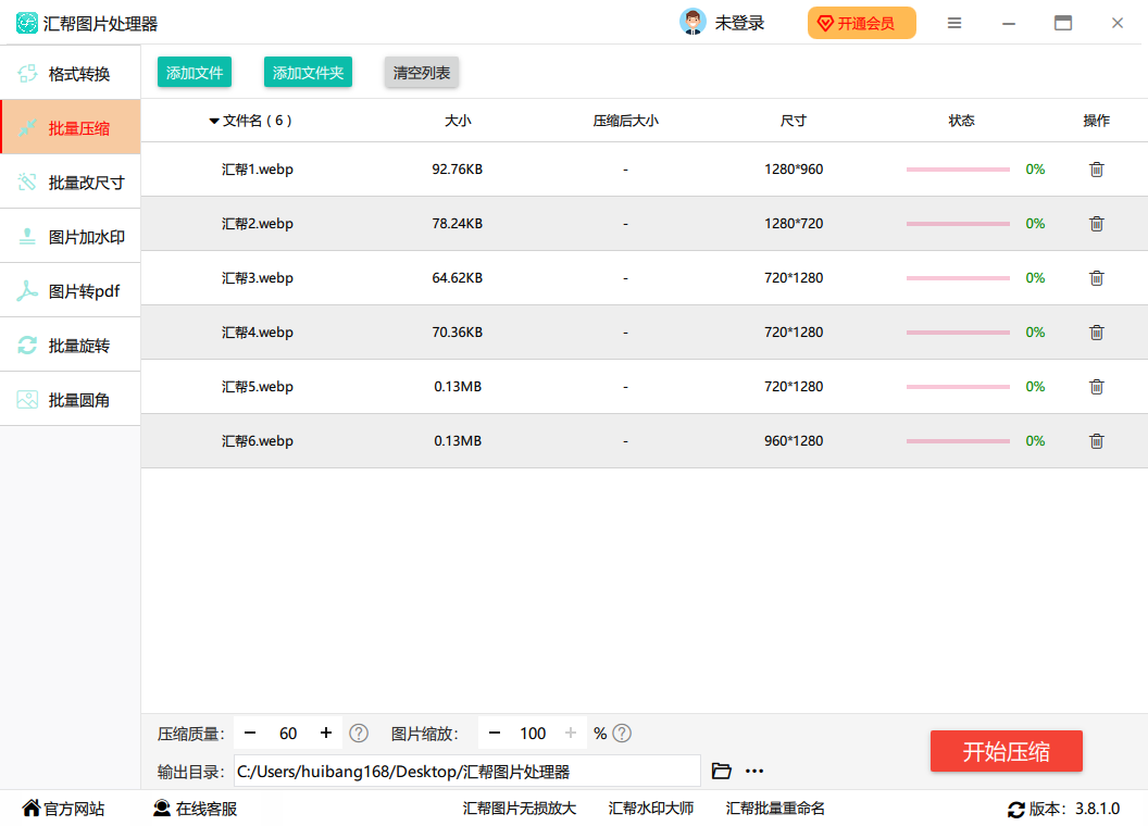 支持常见的JPG/PNG/BMP/WEBP/GIF等图片格式压缩。主要功能有:一键批量压缩、压缩成功率高、高效率压缩。
