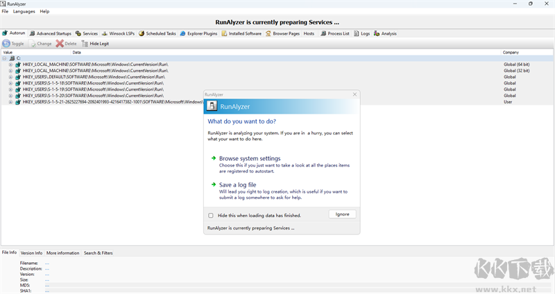 RunAlyzer自启程序管理工具是一款超级专业的电脑自动启动软件,软件提供了更加详细的程序信息,有程序名称、发布者、路径等,帮助用户更准确地判断是否需要保留该自启程序。用户可以通过一键优化功能,快速清理不必要的自启程序,有需要的用户欢迎到本站下载体验!