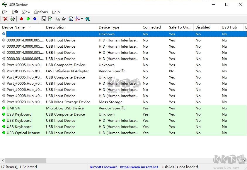 1 USBDeview可以列出设备的名称和描述、设备添加的日期以及最后连接的日期以及其它信息。
