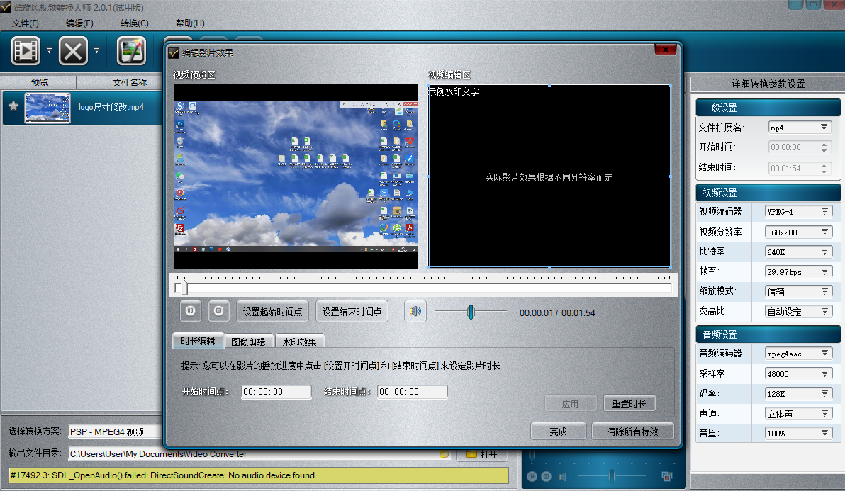 5.适用变换一切时间范围的短视频,设定开始时间和完毕时长,对必须变换的短视频开展提取。