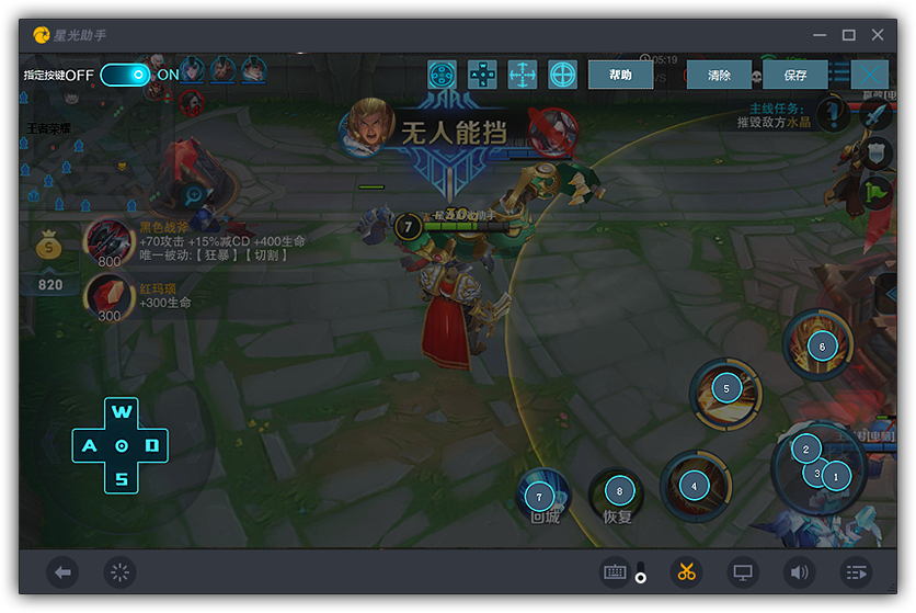4、游戏安装完成,在模拟器右侧打开辅助工具,可根据自己的需求勾选脚本功能;