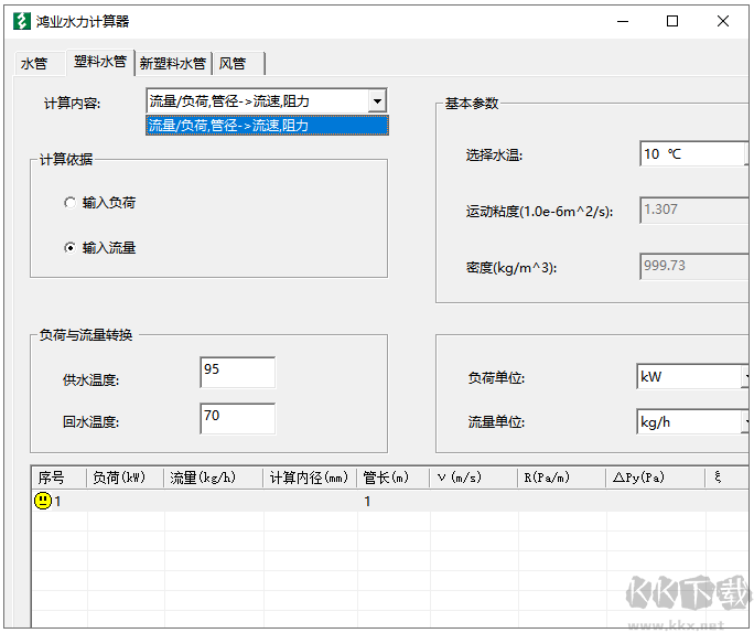 鸿业水力计算器电脑版是一款非常专业好用的最水力计算软件,这款软件的计算功能非常的强大,用户能够利用这款软件更好的计算水管的管径,流速,阻力等,操作起来也非常的简单,无需安装点击即能使用,感兴趣或者有需要的小伙伴就快来kk网站下载体验一下吧。