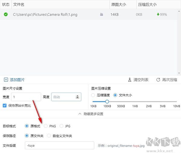 2、压缩到指定大小,支持压缩后设置图像文件大小。