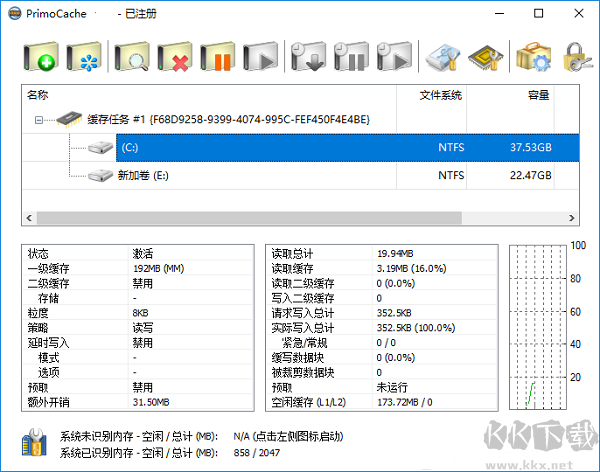 8、PrimoCache完美破解版支持同时缓存多个硬盘和多个分区。