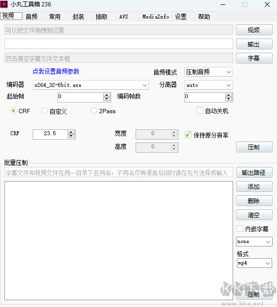 小丸工具箱是款针对视频文件打造的编辑处理工具,软件支持H264+AAC高质量的压制方式,功能强大,支持视频导入、压制、嵌入字幕、无损封装、一键内嵌字幕、输出视频、抽取音频等。还提供小型网站建设、数据抓取、文档处理自动化、音视频处理工具开发等定制服务。喜欢这款软件的朋友快来下载试试!