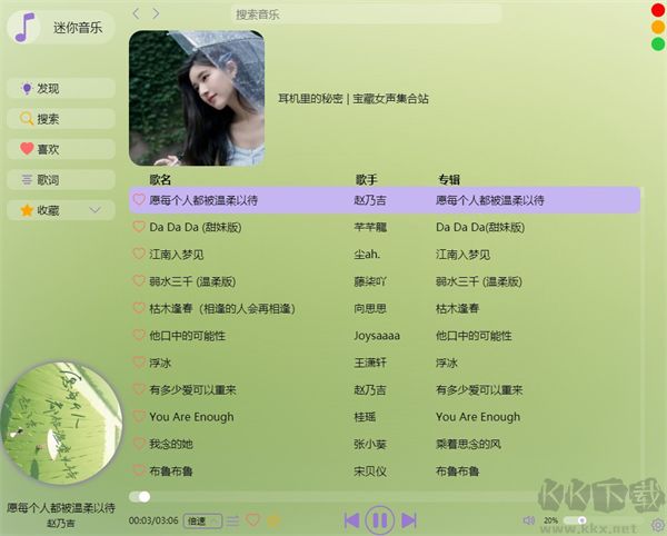 迷你音乐播放器PC版是一款听觉程序,收录大量曲目,品质出色,搜寻歌者或作品非常快捷,门类丰富,旋律动人配合优异声效,感受格外畅快,成为赏乐佳选,还拥有原声放送,播唱、词文展示全部齐全,为避免关闭后内容消失,会记下你的个人偏好,像过往查找、标记曲目、声音强度等,查找菜单轻点就可以收存,取消则要进入专页再触明星标,曲单中点按演唱者姓名,能直达主页,整个过程流畅顺手,所有歌谣免费畅听,欢迎喜爱朋友安装试玩。