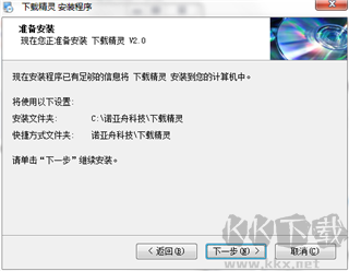 6、可以自行设定诺亚舟下载精灵的安装位置,系统默认的安装位置是 C:\ 诺亚舟科技 \ 下载精灵,点击 “更改” 按钮能更换安装位置,也可直接采用默认设置并点击下一步。
