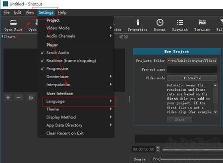 shotcut怎么设置中文
