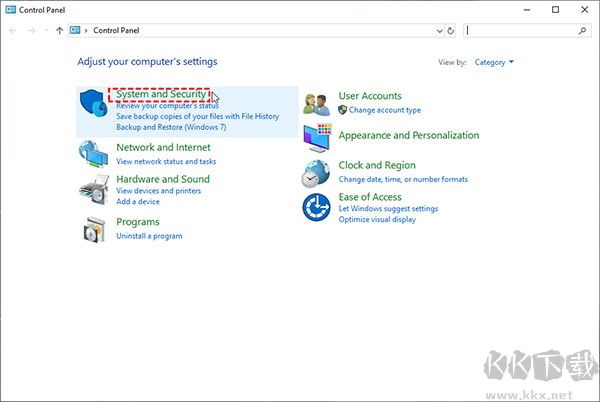 2、但若你尚未安装此程序,可双击桌面的控制面板将其打开,查找并点击系统和安全选项。