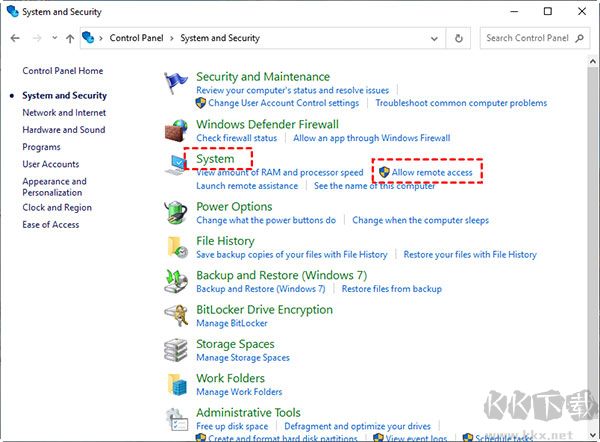 3、在系统栏目下,点击允许远程访问功能,切换至远程标签页。