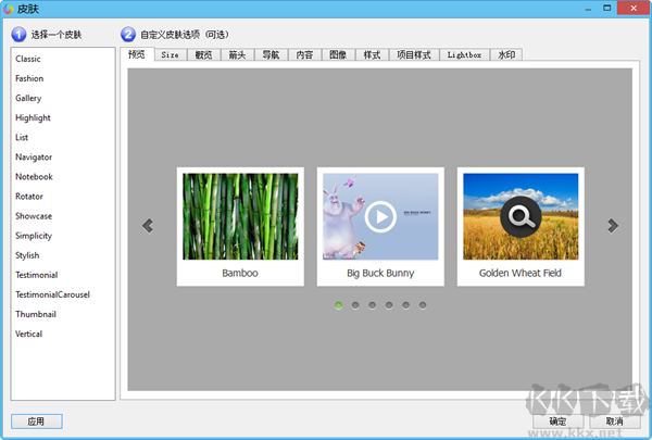 1、借助预设模板,用户无需编写CSS或JavaScript代码,即可快速制作专业级的水平或垂直jQuery轮播组件;