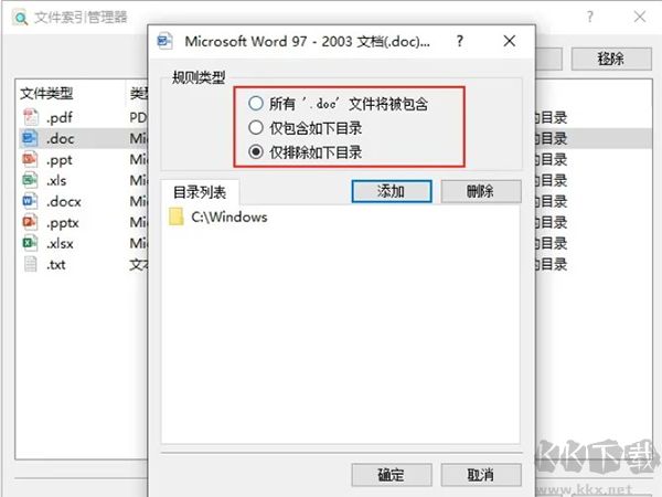 搜索范围:所有.doc文件、仅包含如下目录、仅排除如下目录。