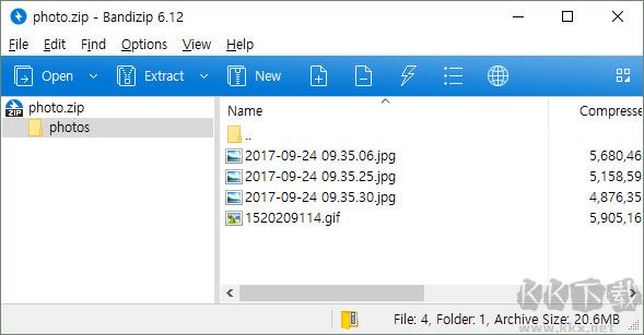 2、当档案中的所有文件都捆绑在一个文件夹中时,它们将被提取到当前位置。 在类似下面案例的情况下,在当前位置创建“photos”文件夹,并将所有文件提取到该文件夹内。