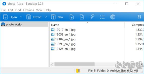 3、在其他情况下,文件将被提取到(档案名)文件夹。 在类似下面案例的情况下,在当前位置创建“photo_A”文件夹,并将所有文件提取到该文件夹。 若已存在任何同名文件夹,则会创建(档案名)(2),(档案名)(3)....