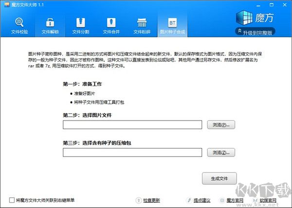 魔方文件大师是一款多功能工具助手,拥有文件校验、解锁、分割、合并、粉碎及图片种子合成等功能,可以解决电脑使用中遇到的大部分相关问题。比如文件校验功能,还能帮助用户检查文件是否被修改,软件下载解压后就能使用,不会产生垃圾注册表文件,还可以很好保护电脑运行效率。软件的功能非常的强大简单,需要的朋友快来下载试试吧!