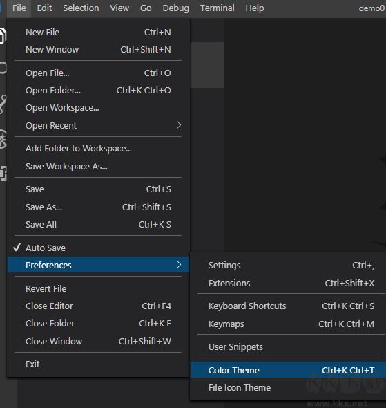 File(文件)- Preferences(首选项)- Color-Theme (颜色主题)