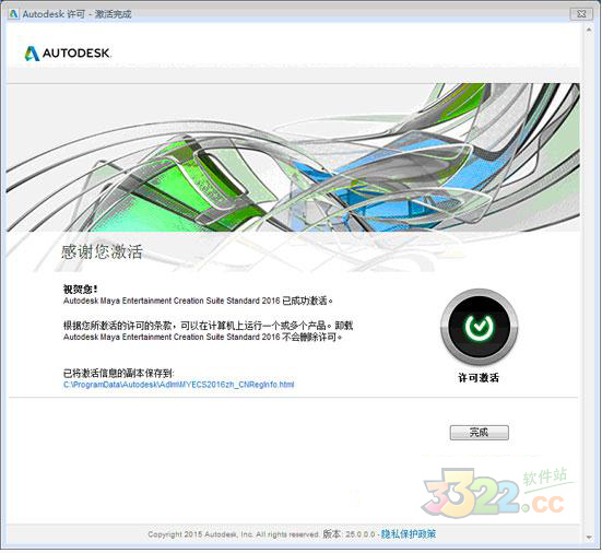 3、这是就会弹出注册成功提示。玛雅2016破解就成功啦。
