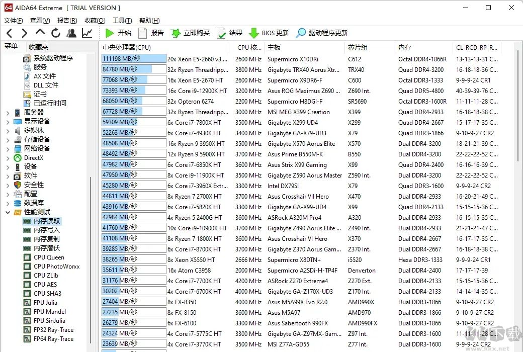 AIDA64 包括几个用于测量单个硬件组件性能的基准。